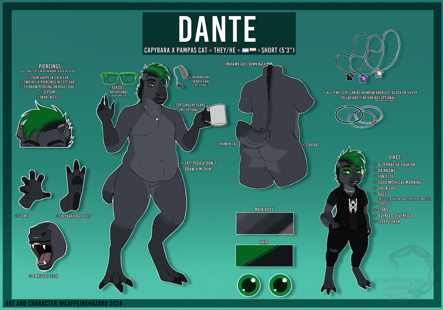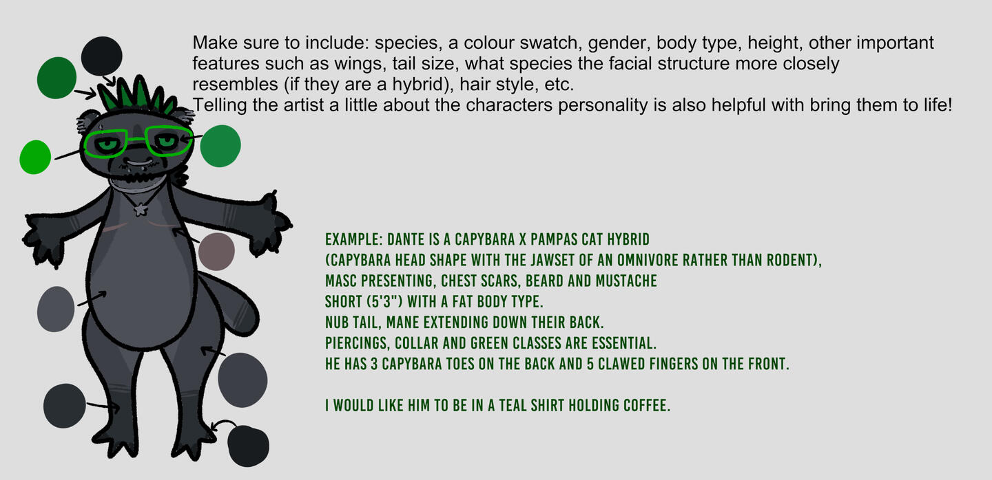 For all non-reference sheet commissions, please have a clear visual reference(s) at hand, CaffeineHazard does not accept AI references. Examples of references can be filled in bases, mood boards, photos or a completed ref.
